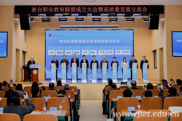 1月25日,浙台职业教育联盟成立大会暨首届浙台职业教育高质量发展交流会在温州成功举行,省教育厅党组成员、副厅长舒培冬,省教育厅港澳台办主任蓝晶晶出席会议,来自台湾13所高校和浙江29所高职院校、行业协会、企业机构的代表近百余人参加活动。作为联盟首批理事单位,学校校长陈德泉受邀参会。